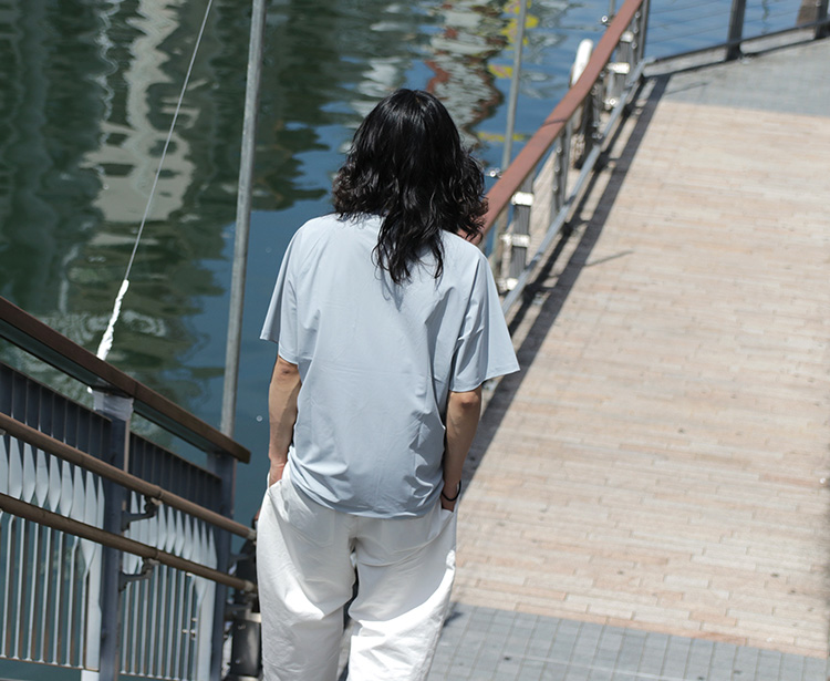 しっかりタックインスタイルにも対応でき、アクティブに動くカラダにも負担なくついてくる。