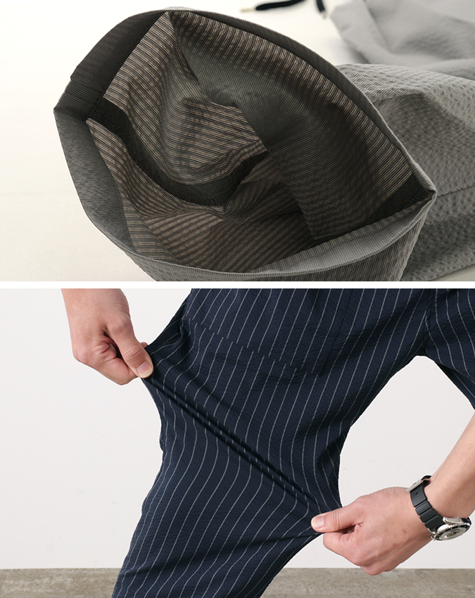 キーポイントは、涼しいクールマックス糸で織り上げたシアサッカーを採用していること。