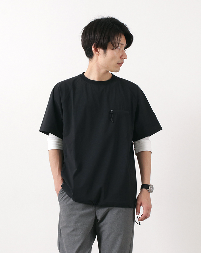 こちらは、真夏を涼しく過ごせるアイスTシャツ。接触冷感、UVカットが備わった機能素材を採用し、真夏のアクティブシーンを盛り上げます。都会的なデザインへと反映されることで、山から街まで着ていただける、そんな1着に仕上がりました。