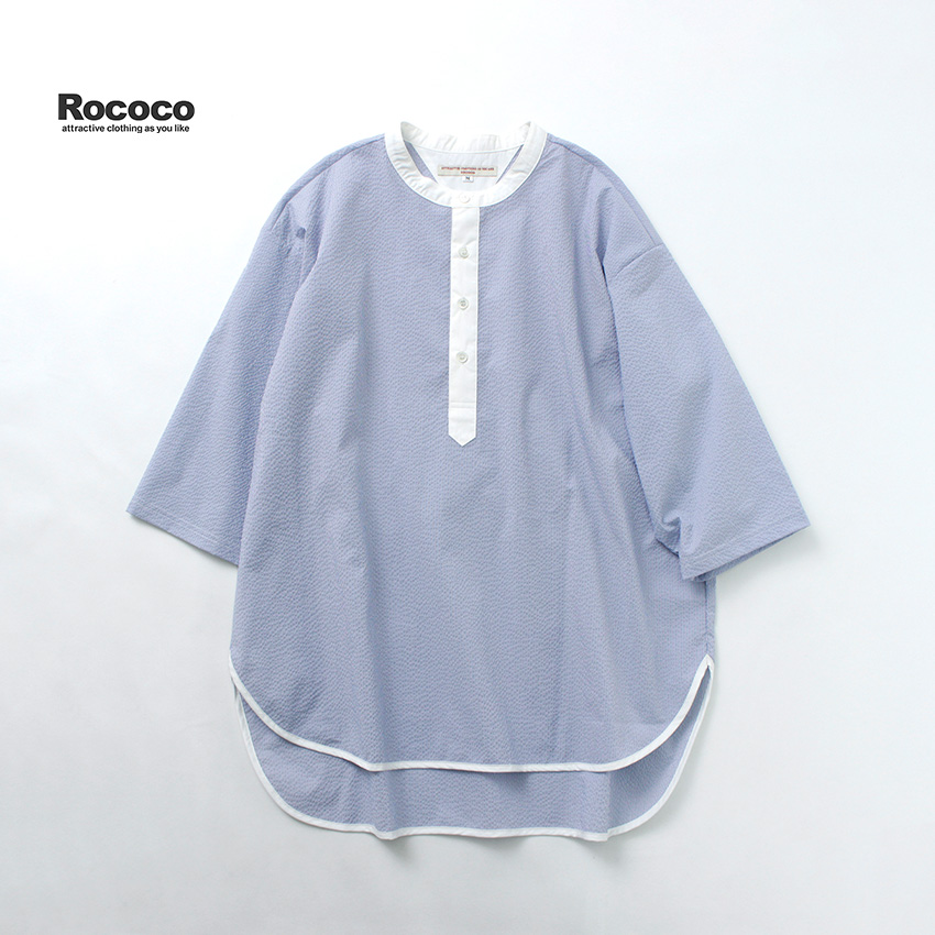 また、ゆったりとしたシルエットに伸縮性もあり、快適な着用感です。前立ての切替でクレリックシャツを彷彿とさせる上品なルックスながら、リラックスして楽しめる1枚に。