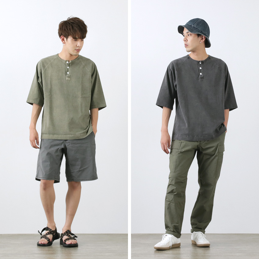 長年プリントTシャツで展開していた、ロングウォッシュ加工の生地を、無地のヘンリーで別注。